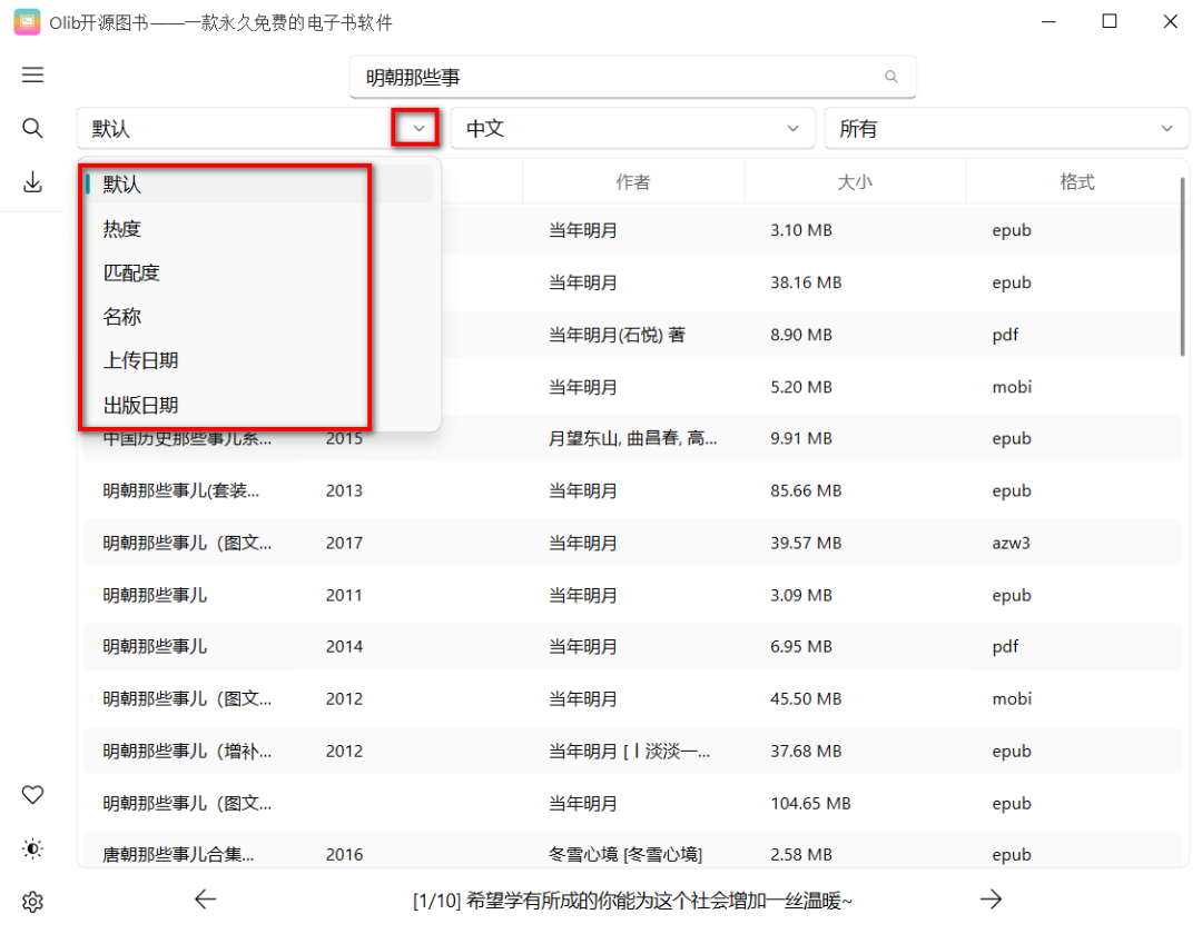 - 资源筛选与排序「Olib」提供多种排序选项,可根据热度、匹配度、书名、上传时间等排序,快速找到心仪的资源。