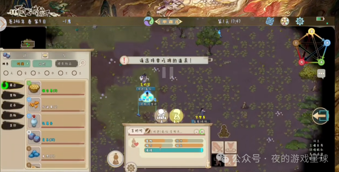 随着游戏推进,门派建设成为关键。玩家可以指挥外门弟子进行各种建设工作,如建造仓库存储资源、工坊制作工具和装备等。这里的建筑元素极具东方特色,炉、鼎、砖瓦屋檐等物件充满古典韵味。而且,游戏引入了 “风水” 和 “五行相克相生” 的概念,大大增加了建筑玩法的复杂度。例如,木头做的桌子和水井因木生土,放在一起象征吉祥;厨房的门需坐东朝西,灶台因属火,不能靠近 “金” 属性建筑,否则会影响风水。